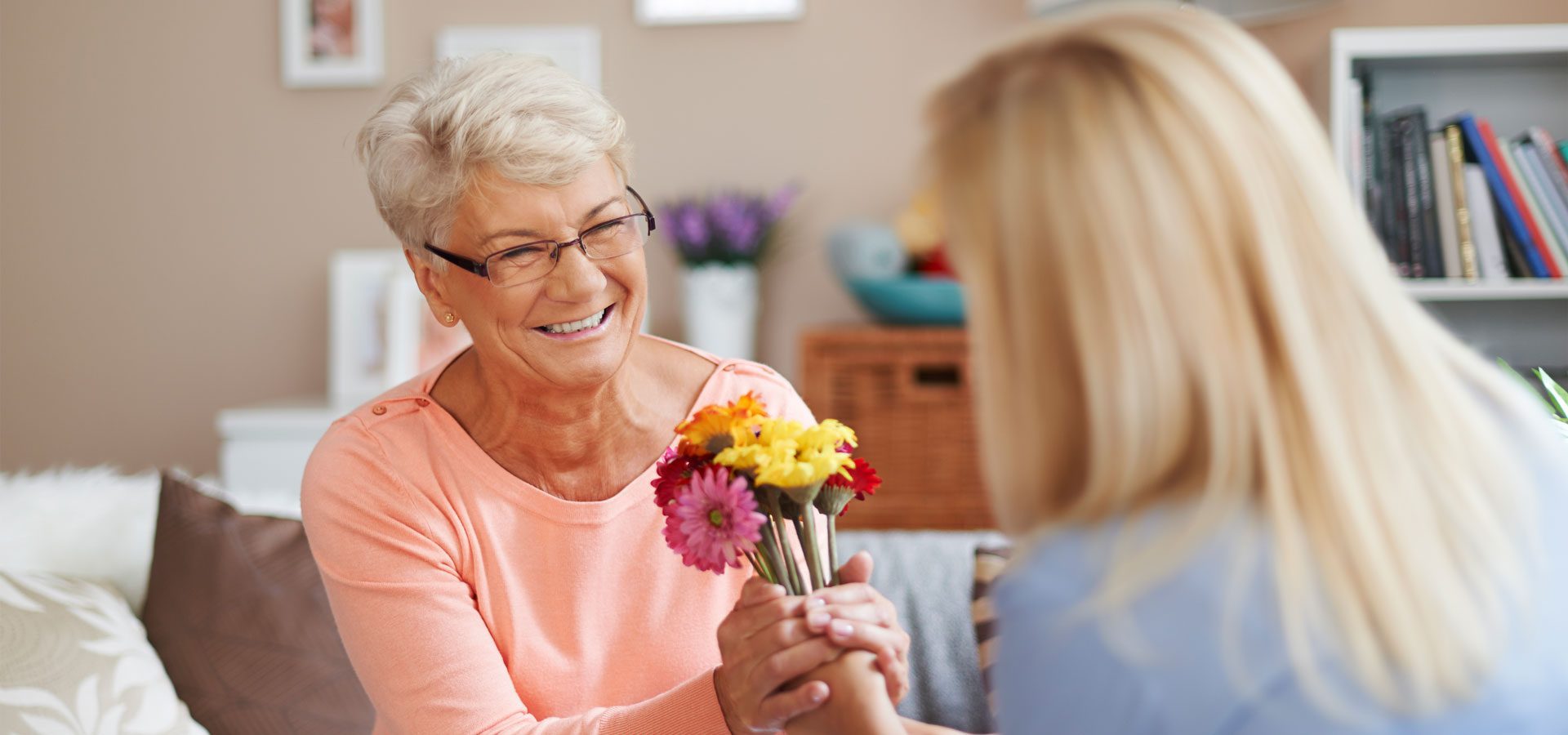 Einfühlsame Betreuung, Gesellschaft leisten und Unterstützung im täglichen Leben für ältere Menschen.